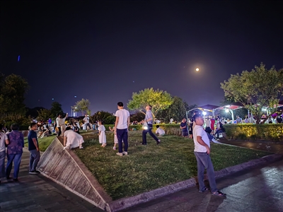 9月11日晚,中秋假期第二天,中心城区黎阳in巷游人如织,但有部分游人随意踩踏草坪,此举欠文明。(钟伟)