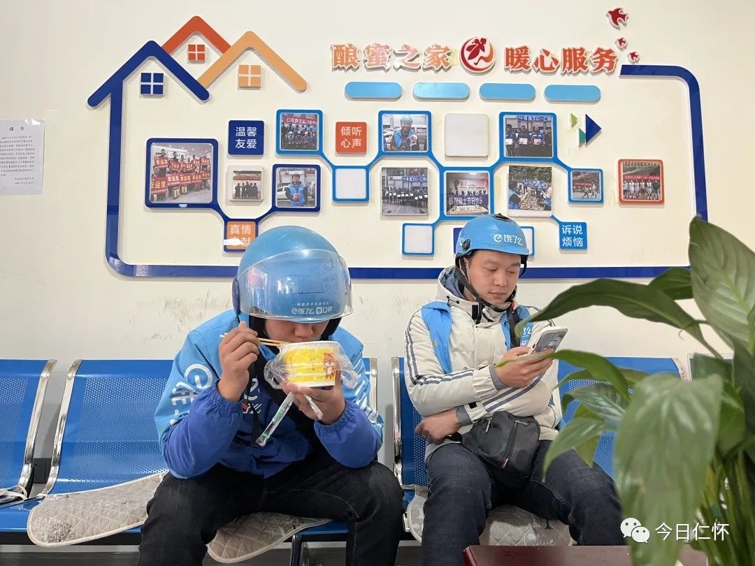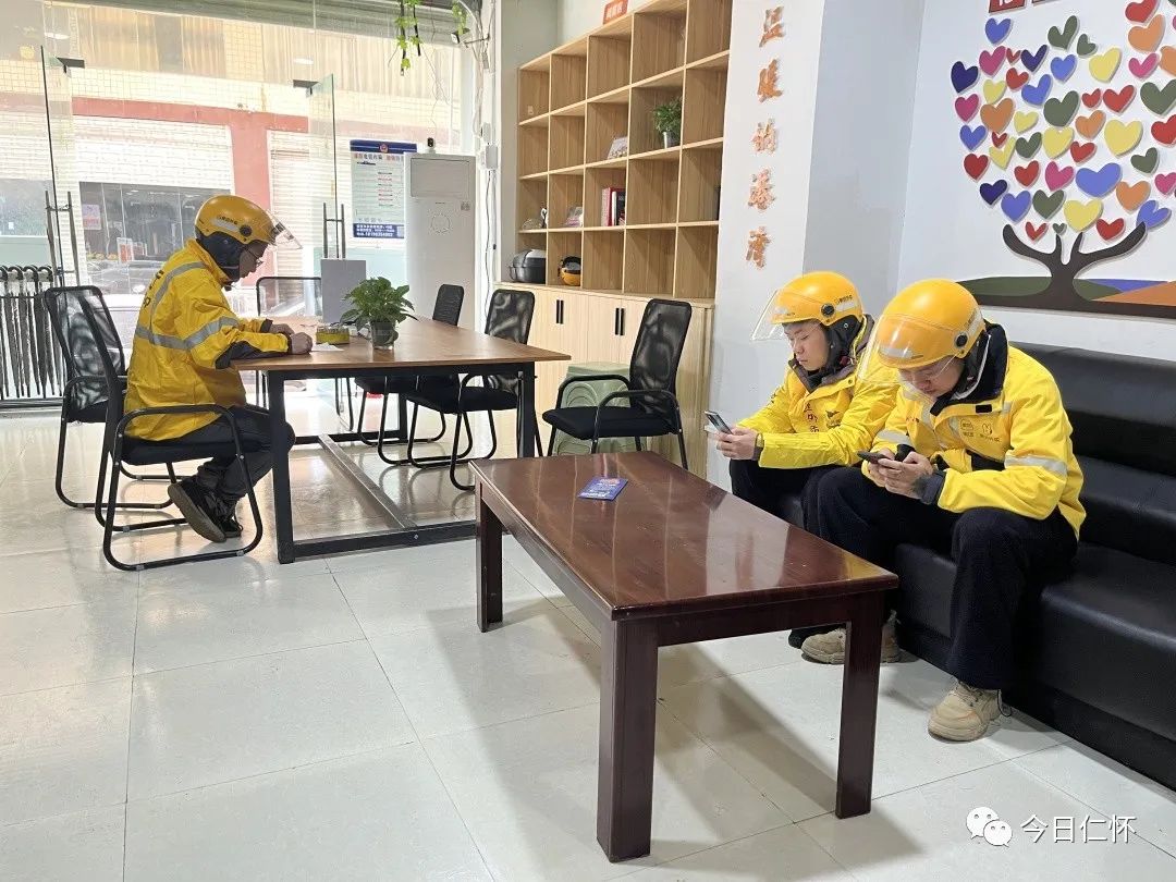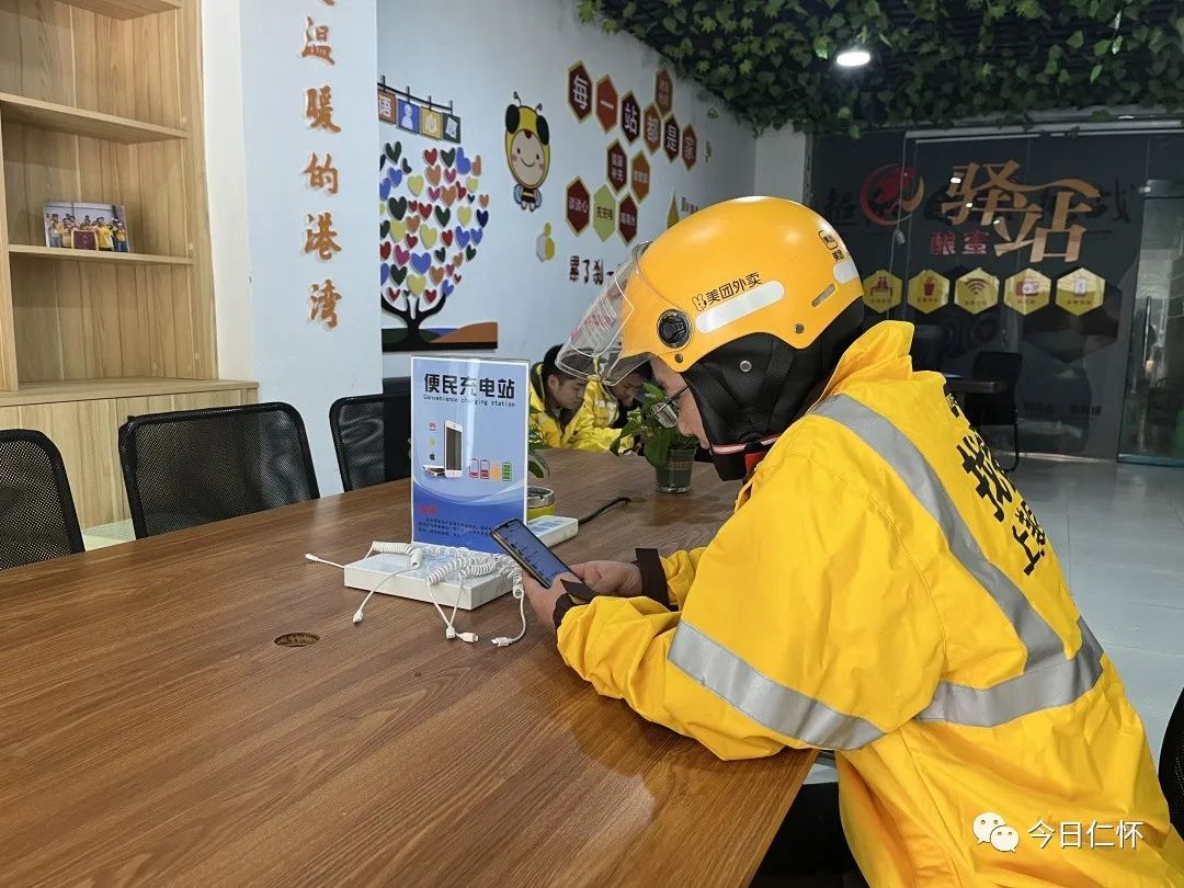 “自从有了这个驿站夏天配有藿香正气水等消暑药品,冬天配有姜汤和感冒药,冬暖夏凉,就像回家了一样,”正在驿站休息的美团骑手杨小河说。