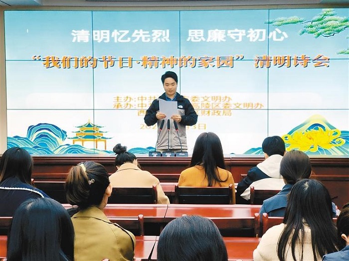 4月3日下午,由西安市委文明办主办,高陵区委文明办、高陵区财政局承办的“清明忆先烈 思廉守初心 ”——2023年“我们的节日·精神的家园”清明诗会主题活动在高陵区财政局举行。